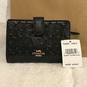 Brand new Coach wallet. The outside is patent black leather with small, multi-color glitter. Has 8 slots for cards, room for bills, and a zip pocket. 3.5 x 5 inches. Smoke-free pet-friendly home.