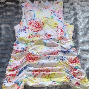 White ruffled tank with spring colors ๐