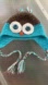 Turquoise/Teal/ Aqua Blue and Brown Base with White Eyes, Orange Nose, and Teal Blue Button Eyes Stitched onto Hat with White Thread.