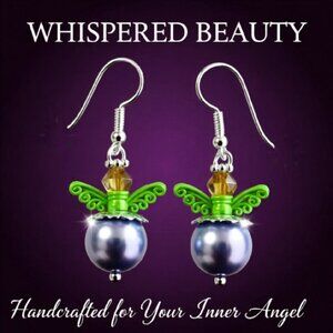 You will love these colorful beauties! I used various gemstone and glass beads, added verdigris + patina painted, shabby chic style, colorful Angel Wings, and glitzy spacers for a touch of bling! Ear wires are silver plated stainless steel.