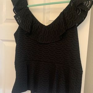 White House Black Market short sleeved eyelet shirt. Black. Sized small. More like an 8-10.