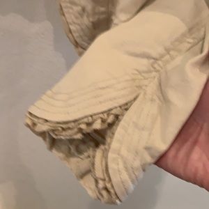 @toofygoofy…my goodness, I need to apologize for this incredibly late response! I am thinking my 5-year-old grandson must have been in my car with me & playing on my phone when it came in; he’s been known to click on notifications as he navigates it, & Poshmark is not an app that I get on as frequently as others😬. This jacket does not zip and it is 14.5 in from shoulder to shoulder on its back side. I will drop it to $14 if you’re interested as an apology for not getting back with you until now!