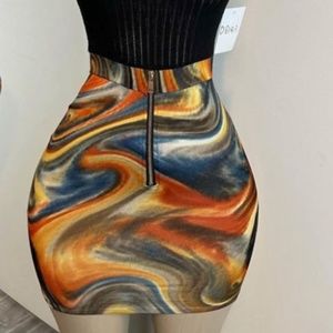 Never worn! Size small…Black & multicolored dress with with gold buttons at the top and a zipper on the skirt. This dress will fit someone who is an XS to a small in juniors size. I would say as far as junior size numbers go it should fit a junior 3 and under.