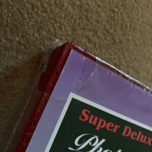 Super Deluxe Photo Album Library Edition Holds 112 Photos. Cellophane torn in corner. Holds 3 1/2”x5” & 4” x 6” prints in easy to use flip-up sleeves. New.