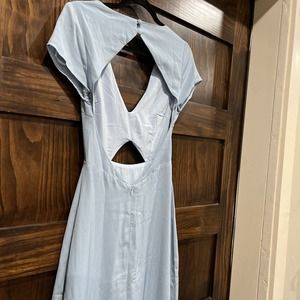 Super Down Dress Women Extra Small Light Baby Blue Long Maxi Cut Out Cap Sleeve