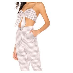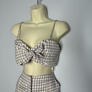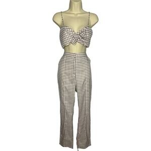 Super Down Raye Cami Pant 2 Piece Set Beige/Purple Gingham Crop Top Medium New