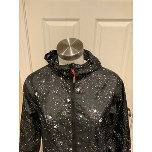 Super Dry Black Hooded Star Print Windbreaker, Lightweight Jacket, Size XS