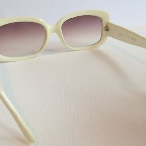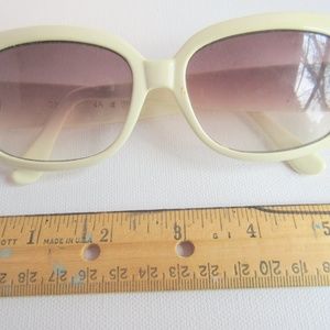 Hide from the paparazzi in these white-rimmed sunglasses. Smoky gray non-prescription frames that measure 5-1/2" at widest point. Good for wide face or round/oval shape (like mine!). EUC. Sold as is.