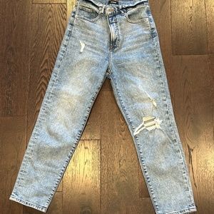 Worn twice. Ends right above ankle (shown in last picture). My toe went through the hole so that’s why the rip is different, but I wanted to include the Express pictures last so you can see the fit and where pant length.