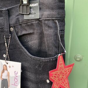 Super High Rise Straight Premium Denim Raw Hem Jeans Pants Size 17