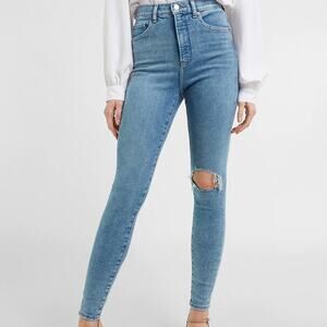 Express Super High Waisted Ripped Light Wash Skinny Jeans Plus Size: 18 Short Color: Light Wash NWOT