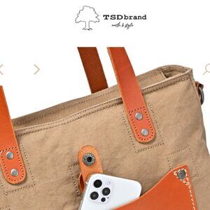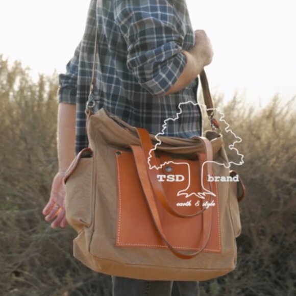 Currently retails for $125. This TDSBrand tote's earthy tones and western-inspired accents evoke a sense of freedom and exploration, making it the perfect accessory for those who lead a dynamic, eco-conscious lifestyle. It’s a symphony of 100% cotton canvas and genuine leather, accented with recycled, nickel-free hardware and vegetable-based dyes, highlighting an unwavering commitment to sustainability.
