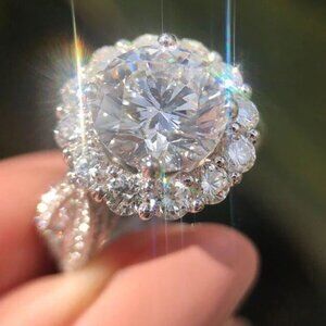 🔥Super Large Flower Zircon Wedding Silver Plated Dainty Ring for Woman, L154