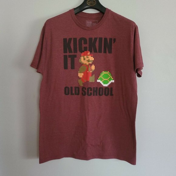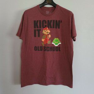 Super Mario Bros Graphic T-Shirt Mens Large Kickin' It Old School Short Sleeve. Good Condition
