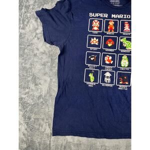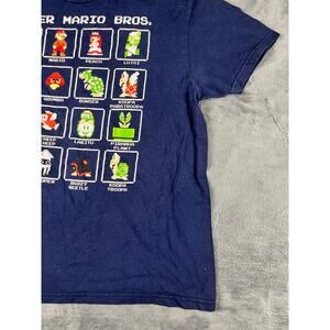 Super Mario Bros Mens XL Blue T-Shirt 16 Character Pixel Grid Nintendo Gaming *