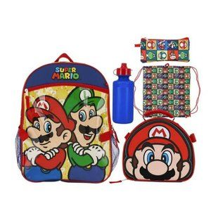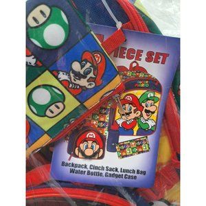 Super Mario Bros NEW 5 piece backpack lunch bag set
