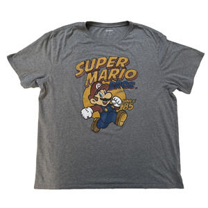 Super Mario Bros Shirt Mens 2XL Gray Nintendo Graphic Tee Old Navy Short Sleeve