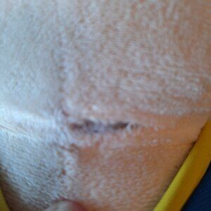 This is a preowned item with normal signs of wear. There is a small rip at the back of the neck.