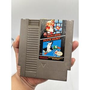 The product is a genuine OEM authentic copy of the video game "Super Mario Bros." and "Duck Hunt" for the Nintendo NES platform, released in 1985. Published by Nintendo, the game features a platformer genre with a sub-genre of hunting, combining the iconic Super Mario characters with duck hunting gameplay. Perfect for fans of classic Nintendo games, this tested and verified product offers hours of nostalgic entertainment.