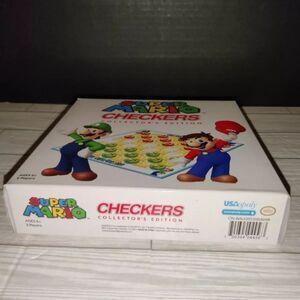 Super Mario Checkers Collector's Edition Board Game USAOpoly Kids Family Game. No Rule book. Has some wear from age use and storage. Sold as is.