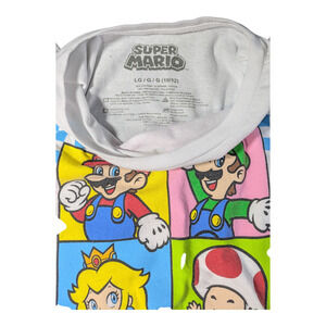 Get ready for some gaming fun with this adorable Super Mario t-shirt for girls! This white tee comes in a size large (10-12) and features a fun Super Mario graphic.