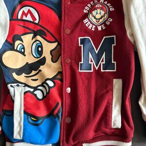 Super Mario Kids Varsity Jacket Red & White Long Sleeve Button-Up Cotton Blend S