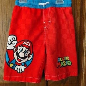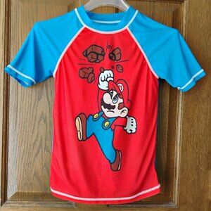 Super Mario Swimsuit Set Swim Trunks Rash Guard Shirt Nintendo Boys Size 5/6