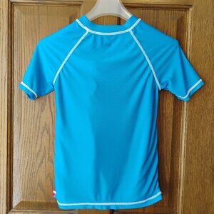 Officially licensed SUPER MARIO Nintendo big boys cool and stylish short sleeve swim shirt top with matching swim shorts. Contrast raglan sleeves with a sublimation print design. UPF 50+ material for UVB and UVA protection; 4 way stretch fabric for comfort and long-lasting fit. Quick drying children’s swim shirt with cute and fun character graphics, comfortable fit and easy-to-dress design. Perfect for beach, pool, or playground splashpad. This pre-owned item has been gently used with light wear from normal use. Smoke and pet free home.