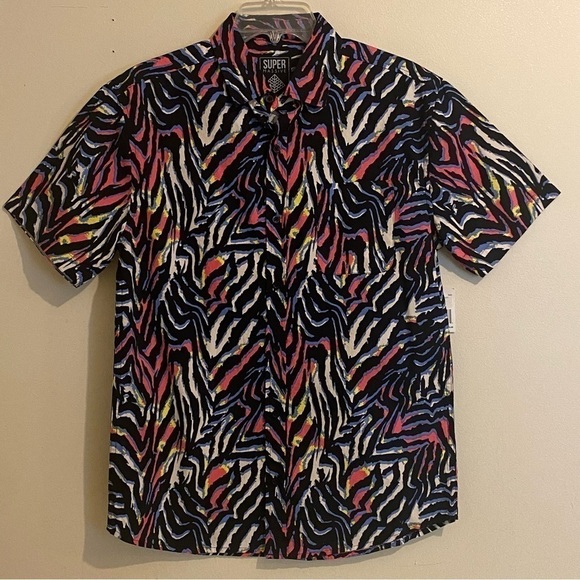 Super Massive Colorful Wavy Pattern Button Down Short Sleeves Shirt Men's Size S