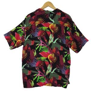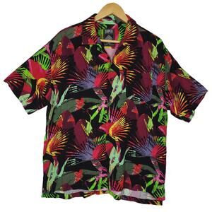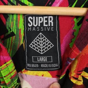 Super Massive Men's Button-Up Shirt Size Large Floral Print Hawaiian Rayon Black