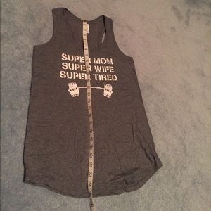 Super Mom, Super Wife, Super Tired workout tank! VERY comfortable, cute & fun workout tank!! I ordered these for a Mom's day event and have a few extras! Sizes: small or large