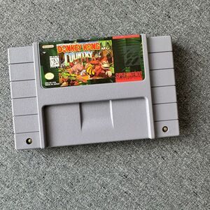 Relive the nostalgia of classic gaming with the Nintendo SNES Donkey Kong game cartridge. This iconic gray cartridge features the standard ridged design and durable plastic housing typical of North American releases. Enjoy vibrant adventures with this timeless video game classic.