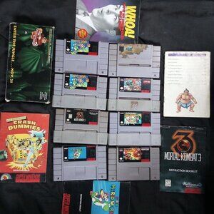 Super Nintendo SNES Games Lot + DK VHS + Manuals 8 Games - Please Read The List To See What Is Included: