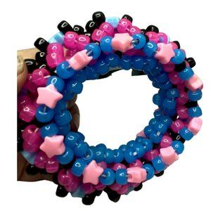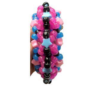 Behold the Super Nova Kandi 3D Cuff, crafted from vibrant pink and blue beads that glow in the dark! Sprinkled with darling light pink and blue star beads, this cuff will light up any music festival or rave! And the best part? You can wear it on your wrist or all the way up your arm, thanks to the variety of sizes available. So, get ready to shine like a super nova!