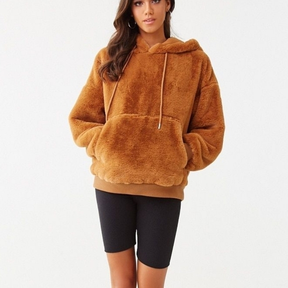 Forever21 Super Plush Camel Teddy Pullover Hoodie. Super soft and comfortable! Kangaroo pocket on front. Jersey knit lined interior. Great condition, no stains or wear.
