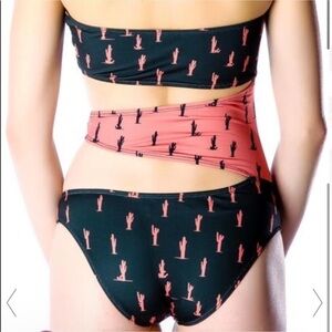 Rare Beach Riot Cactus Print Swimsuit. High and Dry one piece Swimsuit is a coral and grey swimmie with cactus print all over. This strapless one piece has got major cut outs on the side. 80% Polyester, 20% Lycra Spandex