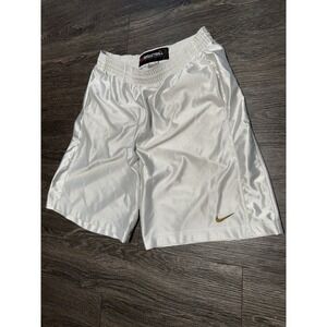 Super Rare Vintage Nike Basketball Dazzle Shorts Shiny XL White & Gold Logo Y2K