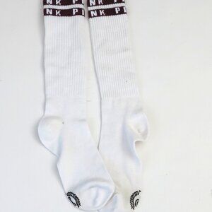 Super rare vintage white knee-high socks with a vibrant red macaroon band and embossed PINK logo on the sole. Brand new, never worn, in excellent condition with only a couple of minor defects that do not compromise the socks' integrity. Perfect for collectors or those looking to add a unique, retro piece to their wardrobe. Don’t miss out on this one-of-a-kind find!