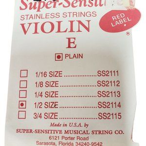 Super Sensitive Red Label Violin Strings 1/2, 3/4 and 4/4 Sizes 4 Strings E E D G