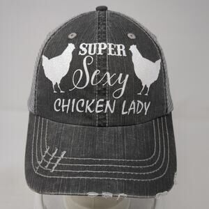 Super Sexy Chicken Lady Trucker Hat Gray OS Adjustable Mesh Back Distressed