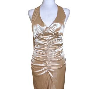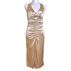 Super Sexy Gold Dress Ruched Backless Asymmetrical Fish Tail Large NWOT