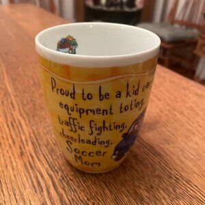Howdy, what I'm offering today is a Super Soccer Mom Themed Coffee Cup by History and Heraldry