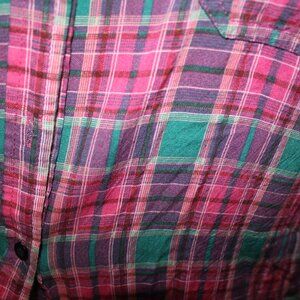Super Soft - Bright Colored Pink/Aqua Plaid Button Up Long Sleeve
