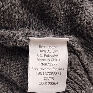 This Super Soft Cotton Blend Zip Mock Neck Sweater comes in Charcoal Gray with Cream White Flecks. It's perfect for wearing on its own or layering, featuring the trending mock neck design with a zip option for those who prefer not to wear turtlenecks. The sweater is ribbed at the cuffs, bottom, and neckline and shows no signs of wear.