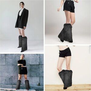 Super Soft Gray Black Mix Mongolian Faux Fur Boot Covers Leg Warmers
