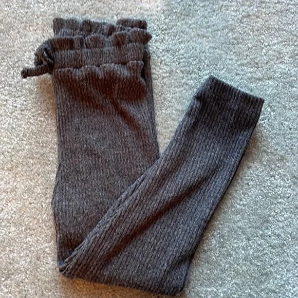 So cozy and comfortable ribbed pants. Has an elastic ruffle waist with a drawstring. In EUC. Charcoal color to go with everything