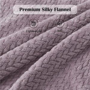 Super Soft Throw Blanket Light Purple Premium Silky Flannel Fleece LeavesPattern
