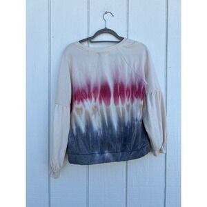 Super Soft Tie Dye Sweatshirt, Puff Long Sleeves, Red, White, Blue, Sz M