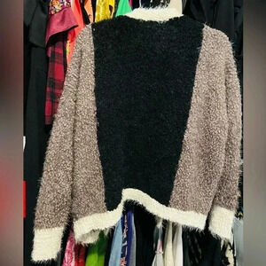 Super Soft and Cozy Lovestitch Cardigan Brown White Black Block Color Pattern
