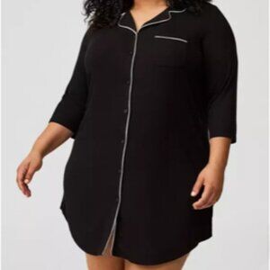 Super Soft by Torrid Rib Button Through Sleep Gown in Black with White Piping – Torrid Size 1